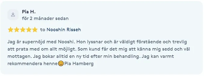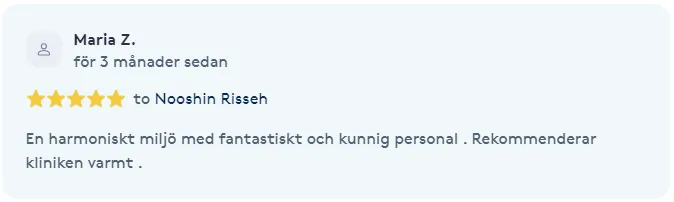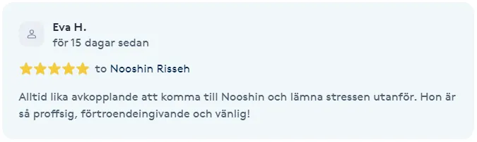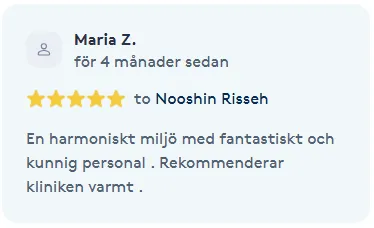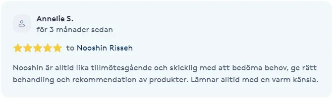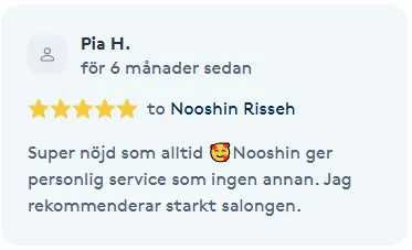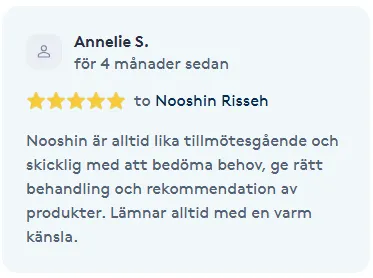Nooshin Risseh är SHR-auktoriserad hudterapeut med flera års erfarenhet inom hudvård men även tandtekniker från Karolinska institutet.
